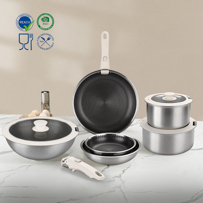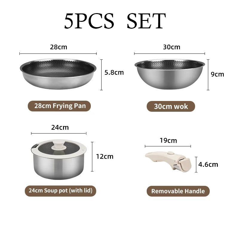 Nom du produit:Batterie de cuisine en acier inoxydable 304 Triply avec poignée amovible