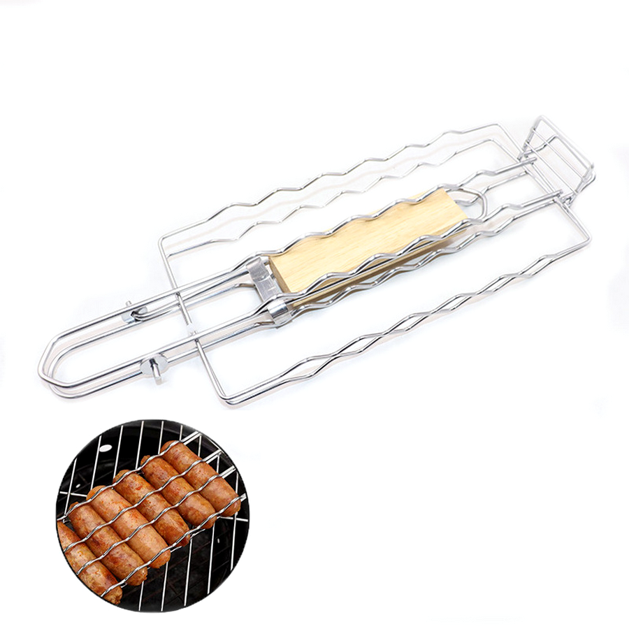 Grille de barbecue détachable en acier inoxydable, grille de barbecue en métal d'extérieur pour hot-dogs, jambon et saucisses, fabriquée à la main avec du charbon de bois