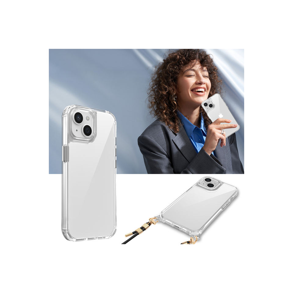Étui en silicone liquide premium avec sangle détachable pour iPhone 15 11 Pro Plus - Housse de protection transparente à clipser