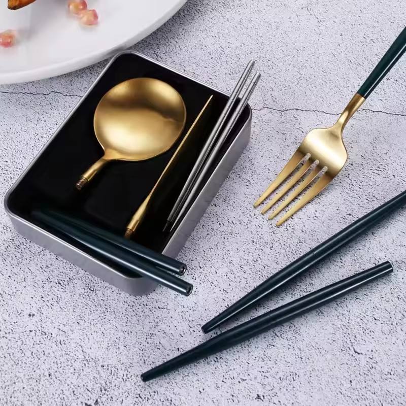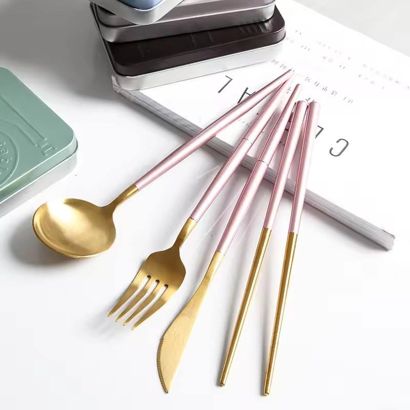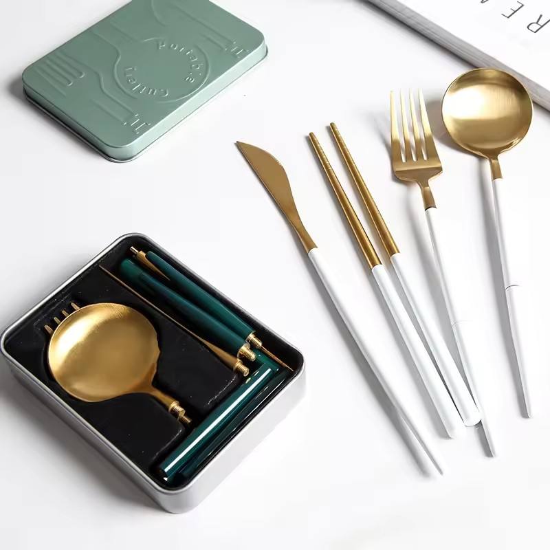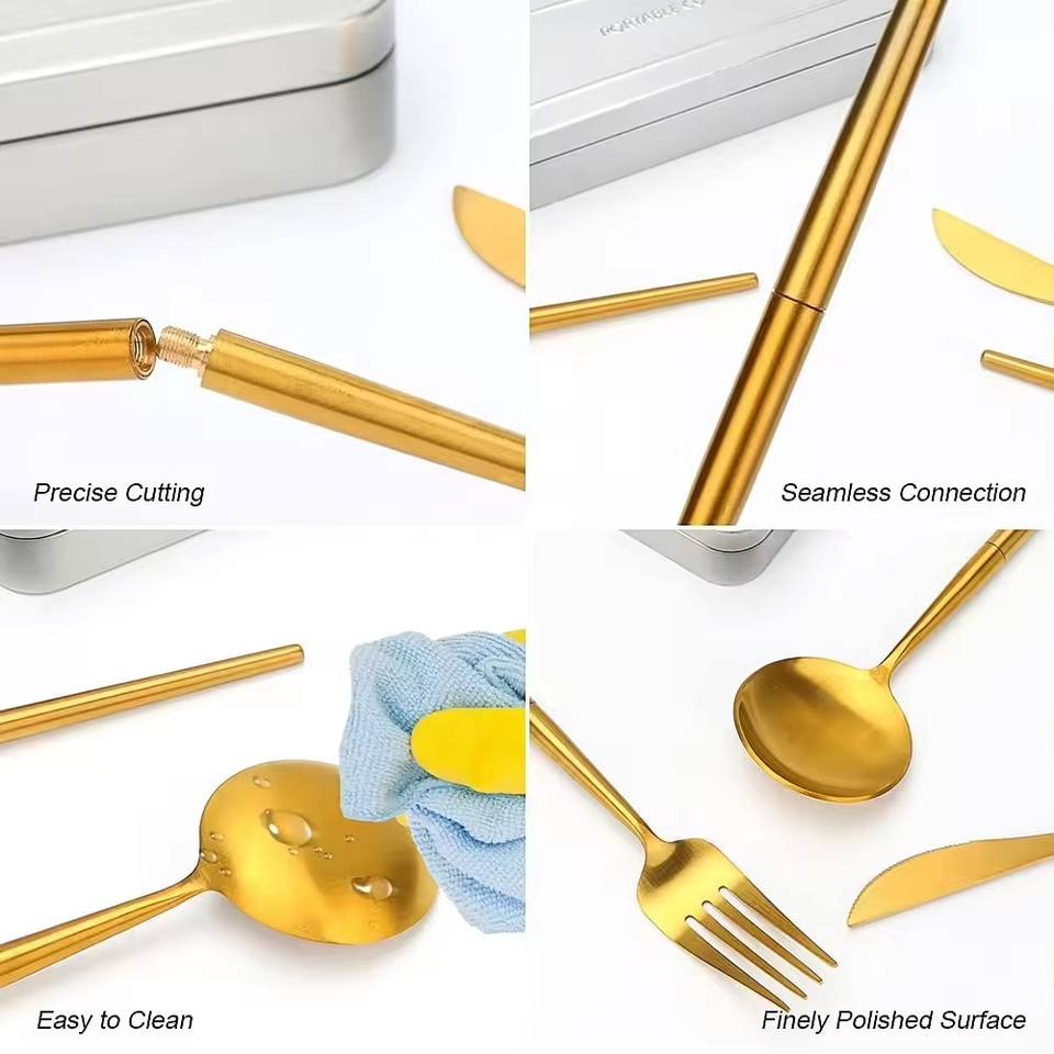 Ensembles de couverts pliables en acier inoxydable d'ustensiles de voyage détachables pour le pique-nique