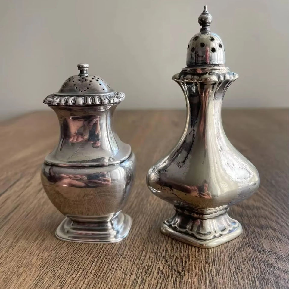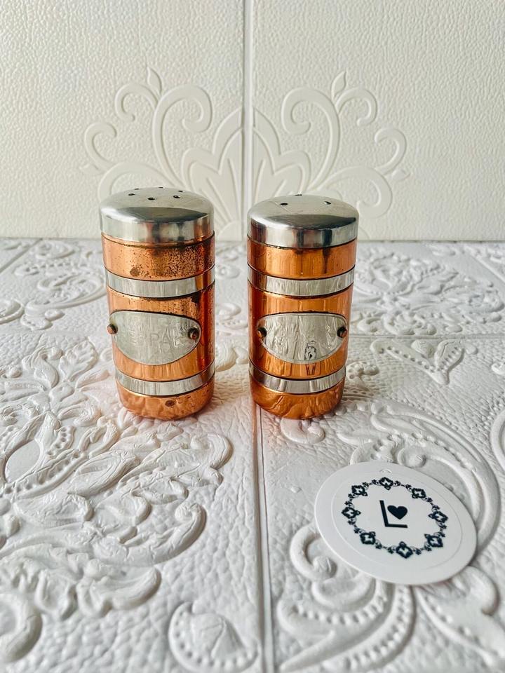 Ensemble de poivre sel en laiton de conception détaillée avec surface texturée et bords lisses idéal pour les cadeaux et l'affichage