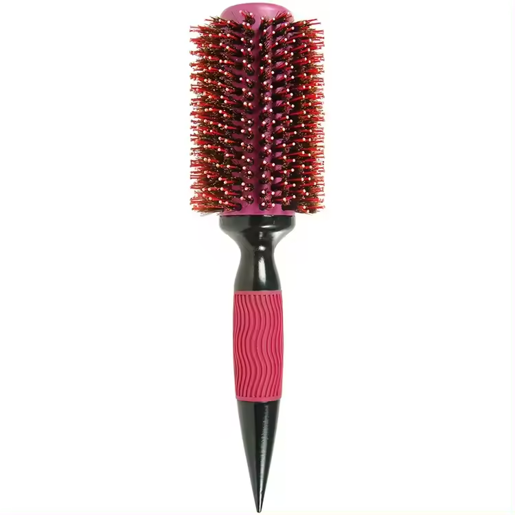 Description du produit:Brosse ronde en bois colorée, tube de w/ceramic, poignée en caoutchouc, taille de L.