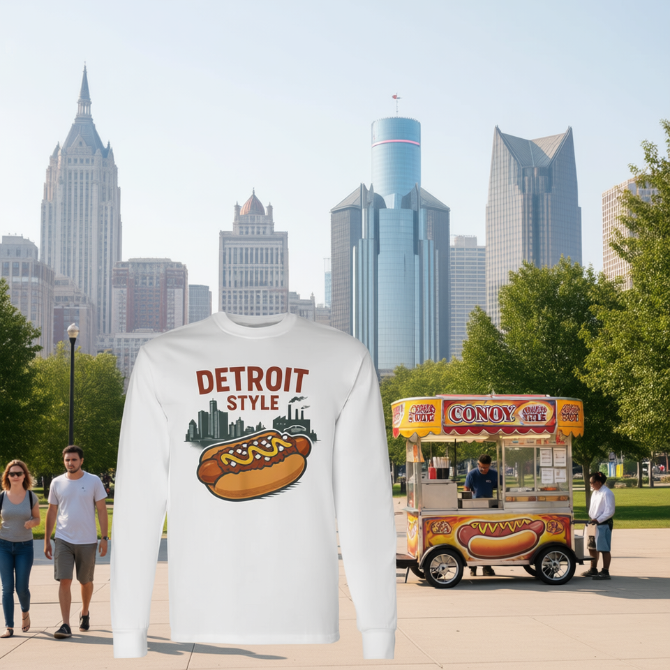 T-shirt à manches longues Detroit Style Hot Dog pour les amateurs de Coney Dog