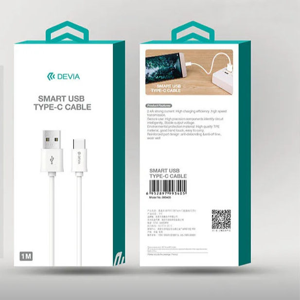 Câble de téléphone portable Devia blanc USB 2.0 vers type-c 5V 2A,1M fil de cuivre pur TPE charge de données