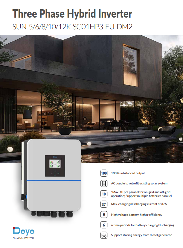 For 6KW Triple Output High-voltage 2 MPPT Hybrid Solar Inverter SUN-6K-SG01HP3-EU-DM2
