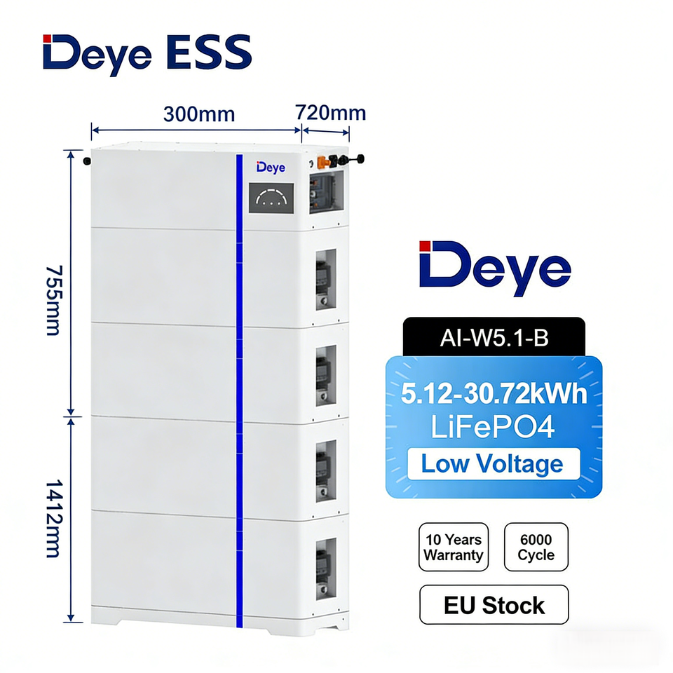 Deye ESS Tout-en-un : Onduleur Hybride avec Batterie LifePo4 et Batterie Lithium-Ion AI-W5.1 Deye 51.2V Basse Tension