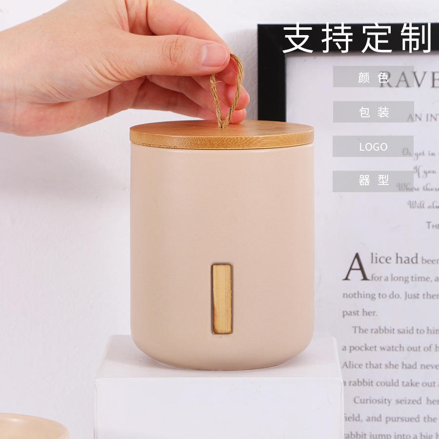 Df1670 Coupe à bougie en céramique cylindrique vide avec couvercle en bois pour cadeau