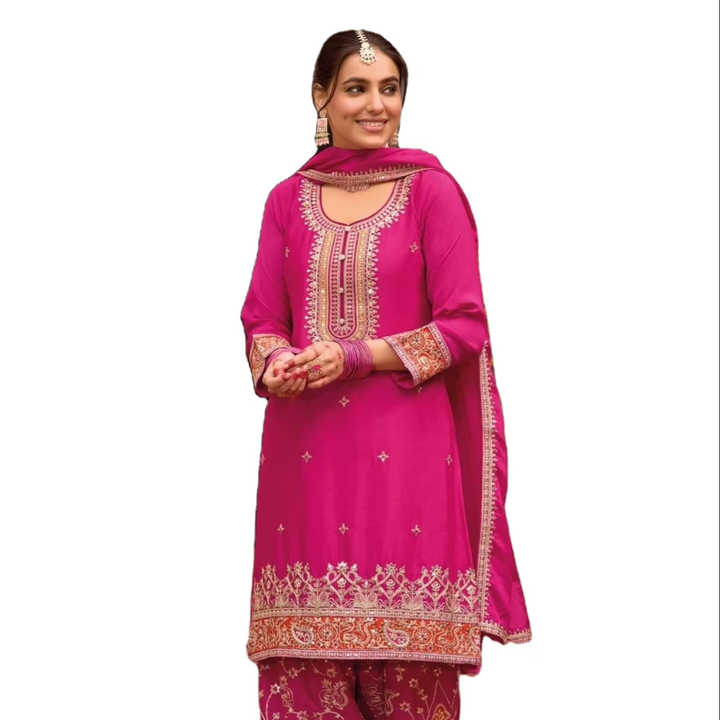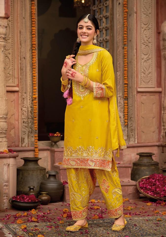 Dhwaja Source directe d'exportation pour la nouvelle Collection Real Chinon Broderie Travail Salwar Kameez Indien Pakistanais Fête De Mariage Porter