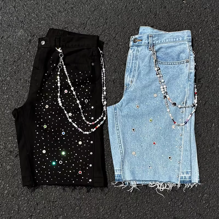Shorts en jean pour homme DiZNEW, design personnalisé, shorts en jean avec strass pour homme 2026