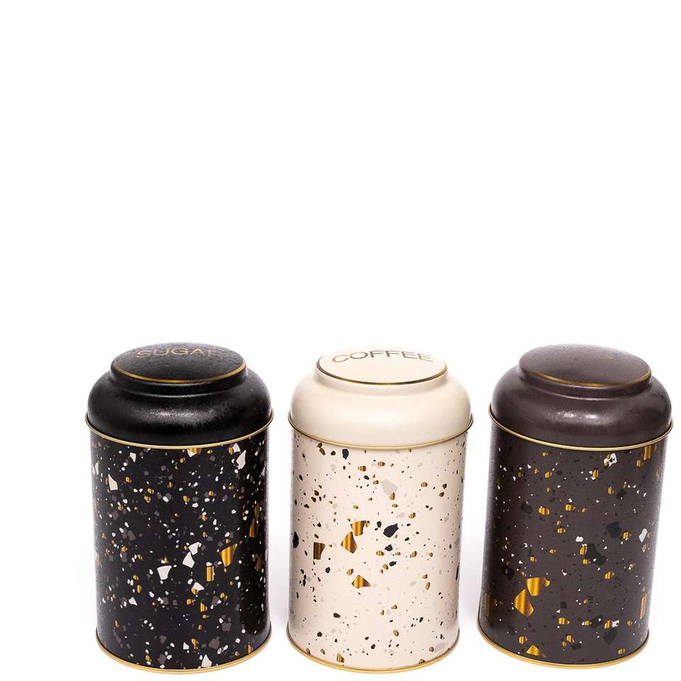 Boîte en métal ronde Kontensan Dia 105 x 150 mm 1,2 L avec couvercle en dôme, design Terrazo