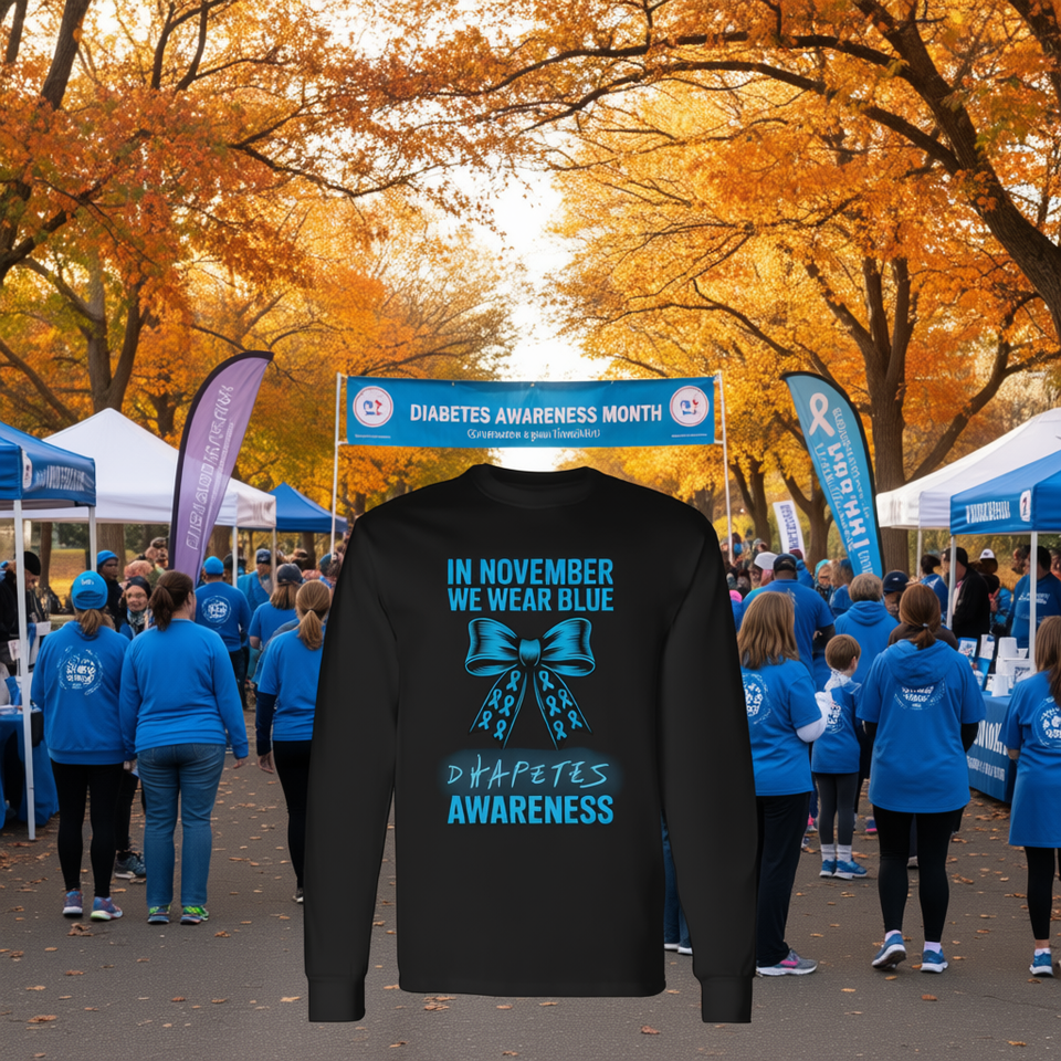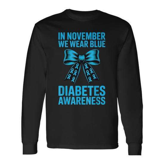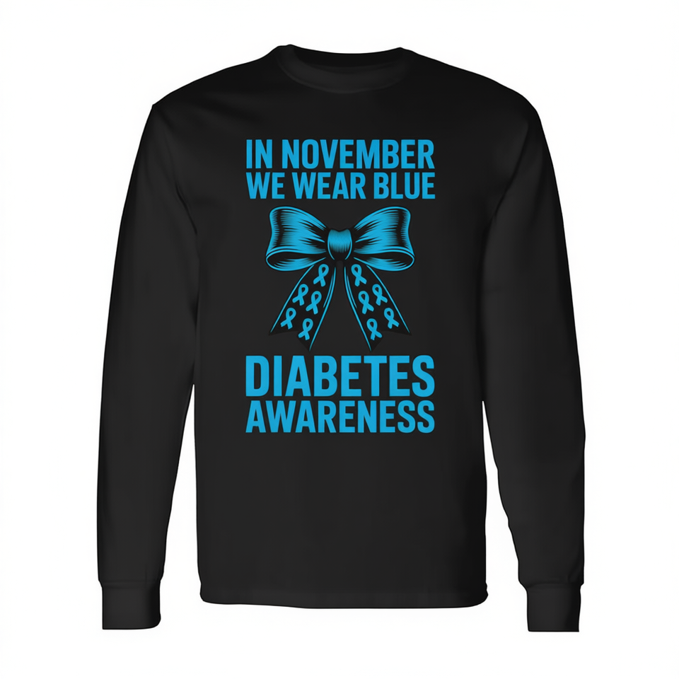 T-shirt à manches longues avec nœud Coquette pour la sensibilisation au diabète, en novembre, nous portons du bleu