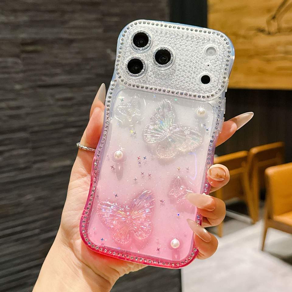 Coque de téléphone antichoc papillon avec protection caméra en diamant pour iPhone 17 Pro, motif vague