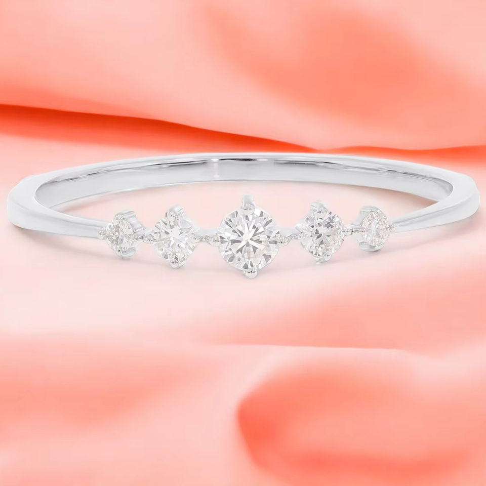 Diamant Clarté 0.15Ct Round Lab Grown Diamond 5 Stone Ring en Or Blanc 14K OEM Wholesale