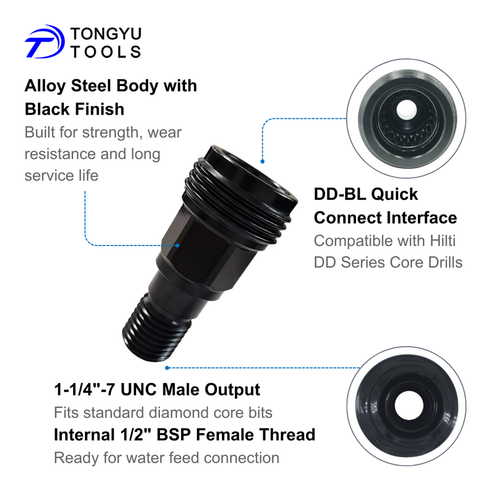 Fit Core Bits with 1-1/4"-7 UNC or 1/2" BSP to HILTI Drill Machine