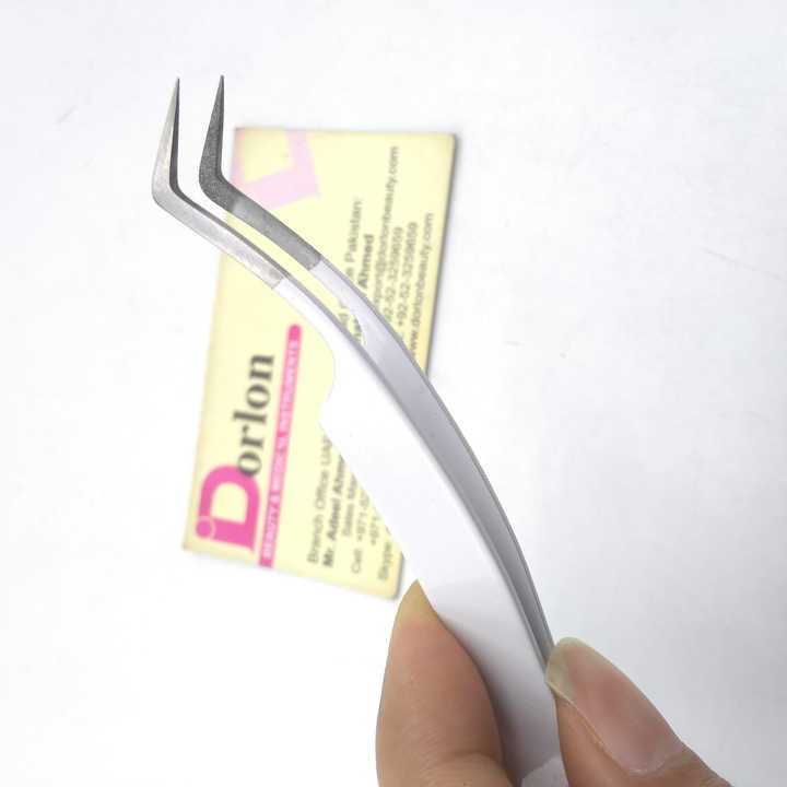 Pince à épiler de précision professionnelle en acier inoxydable, revêtement blanc effet diamant, pour cils ondulés et volume intense, personnalisable avec votre marque privée