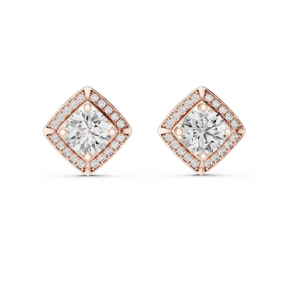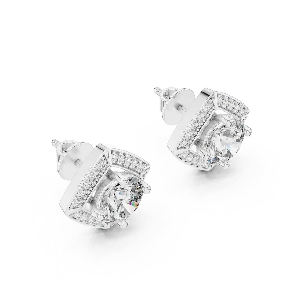 Boucles d'oreilles élégantes en diamant avec un design triangulaire et un diamant rond pour un cadeau de fiançailles