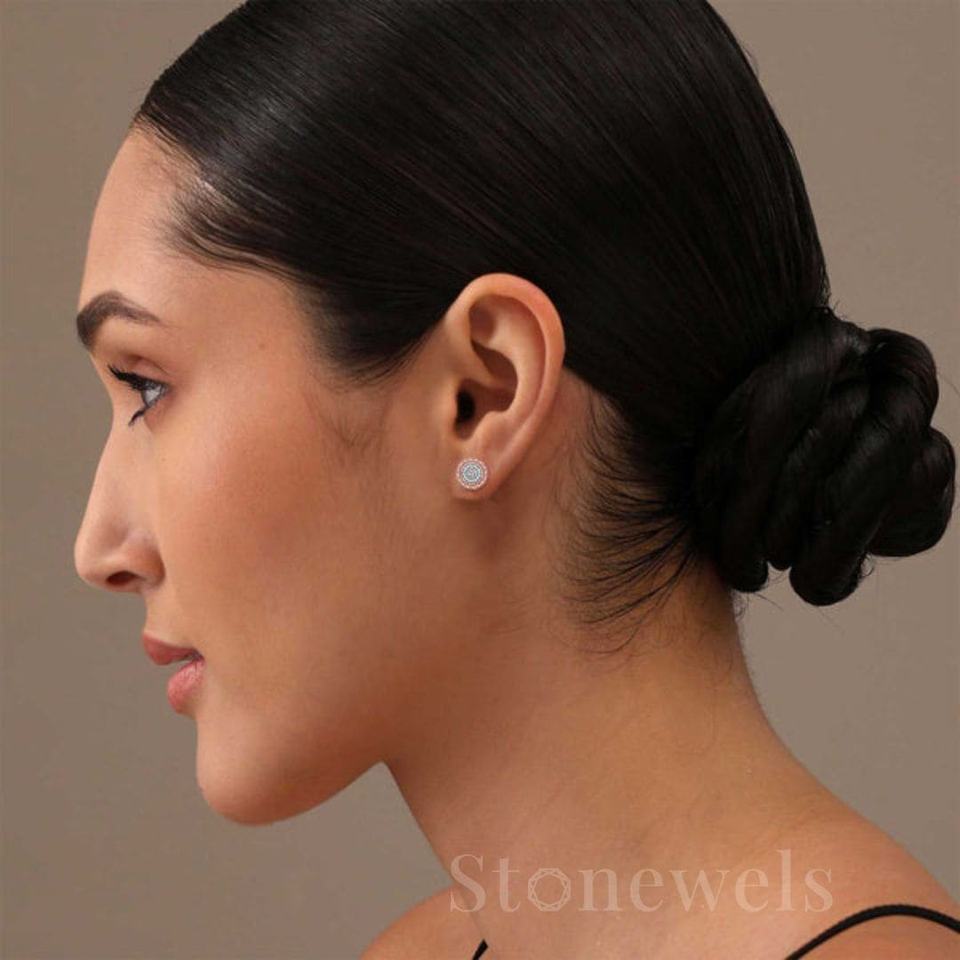 Numéro de Type:Gold-Two-Tone Halo Floral Stud Earrings