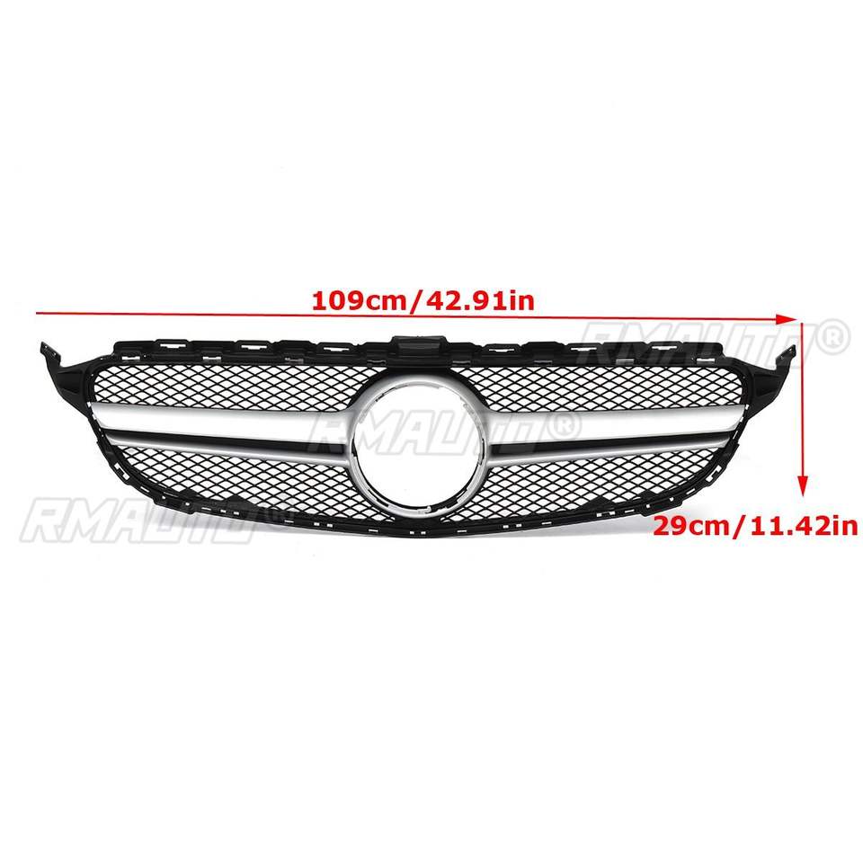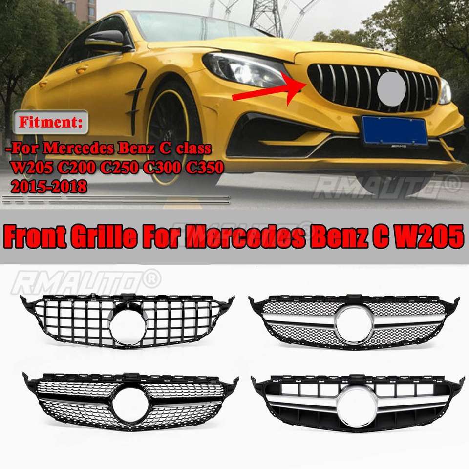 Grille de radiateur de pare-chocs avant style Diamond/GTR/AMG/C63S pour Mercedes Benz Classe C W205 C200 C250 C300 C350 2015-2018