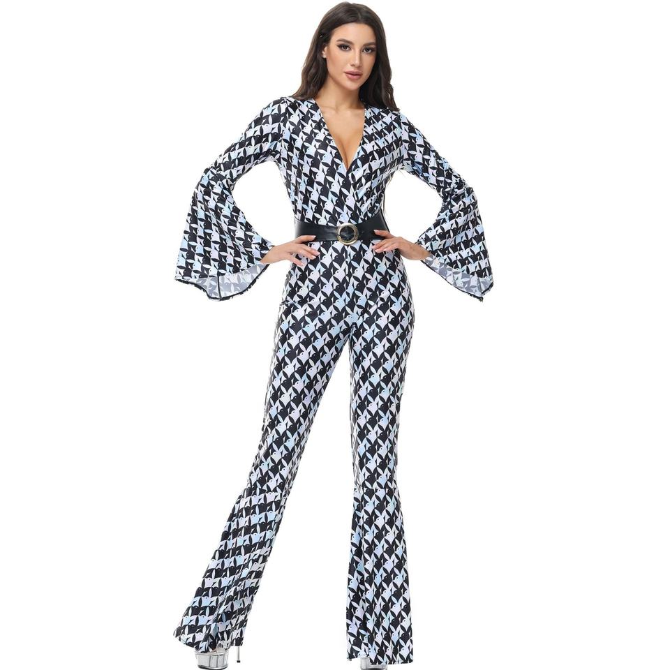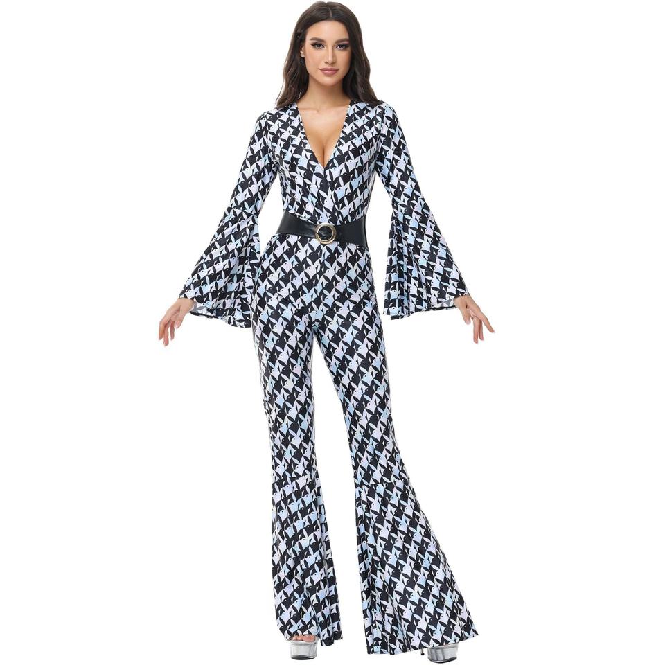 Costume de scène rétro années 80 style disco, motif losanges, pour Halloween, fête hippie, uniforme de chanteur