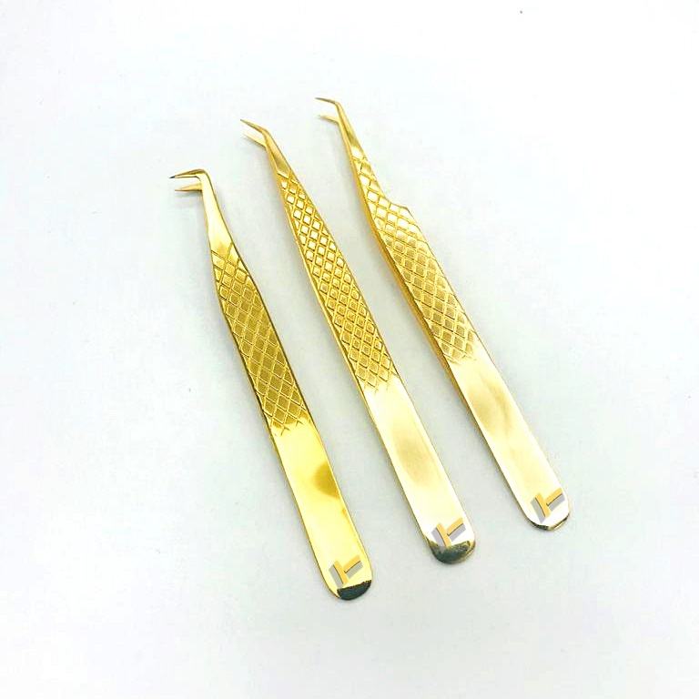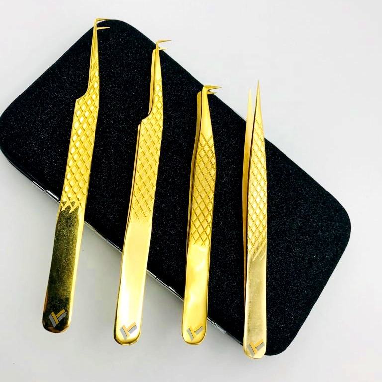 Pince à épiler d'extension de cils plaquée or 24K Diamond Grip Logo personnalisé Acier inoxydable durable pointu privé pour l'usage des sourcils