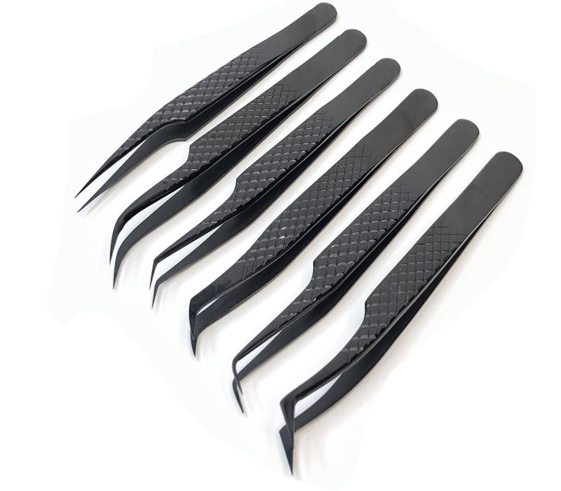 Pince à épiler pour extension de cils Diamond Grip Classic & Volume Lot de 6 outils de beauté de marque privée à pointe pointue en acier inoxydable