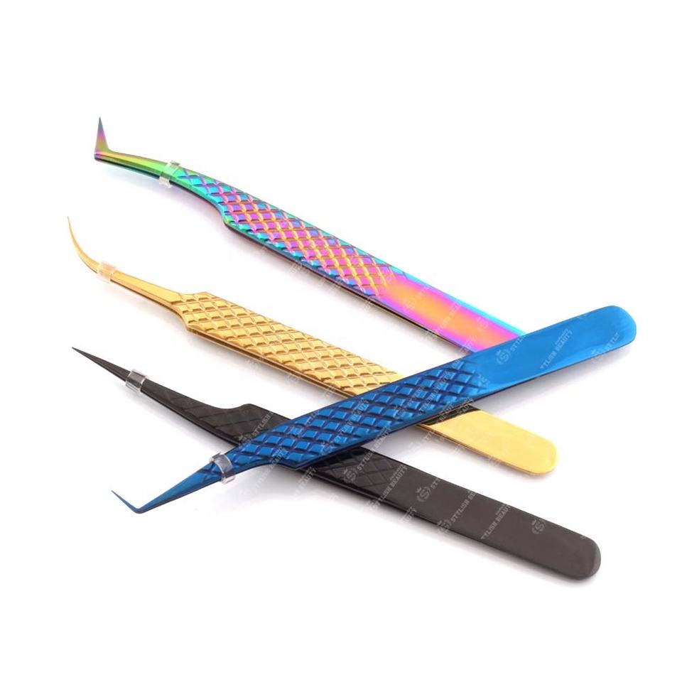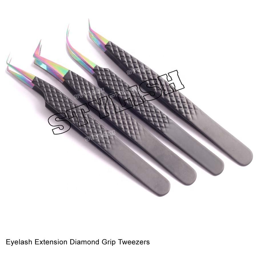 Pince à épiler à extension de cils pointue avec logo personnalisé Diamond Grip Acier inoxydable de haute qualité disponible dans toutes les couleurs pour cils volumineux