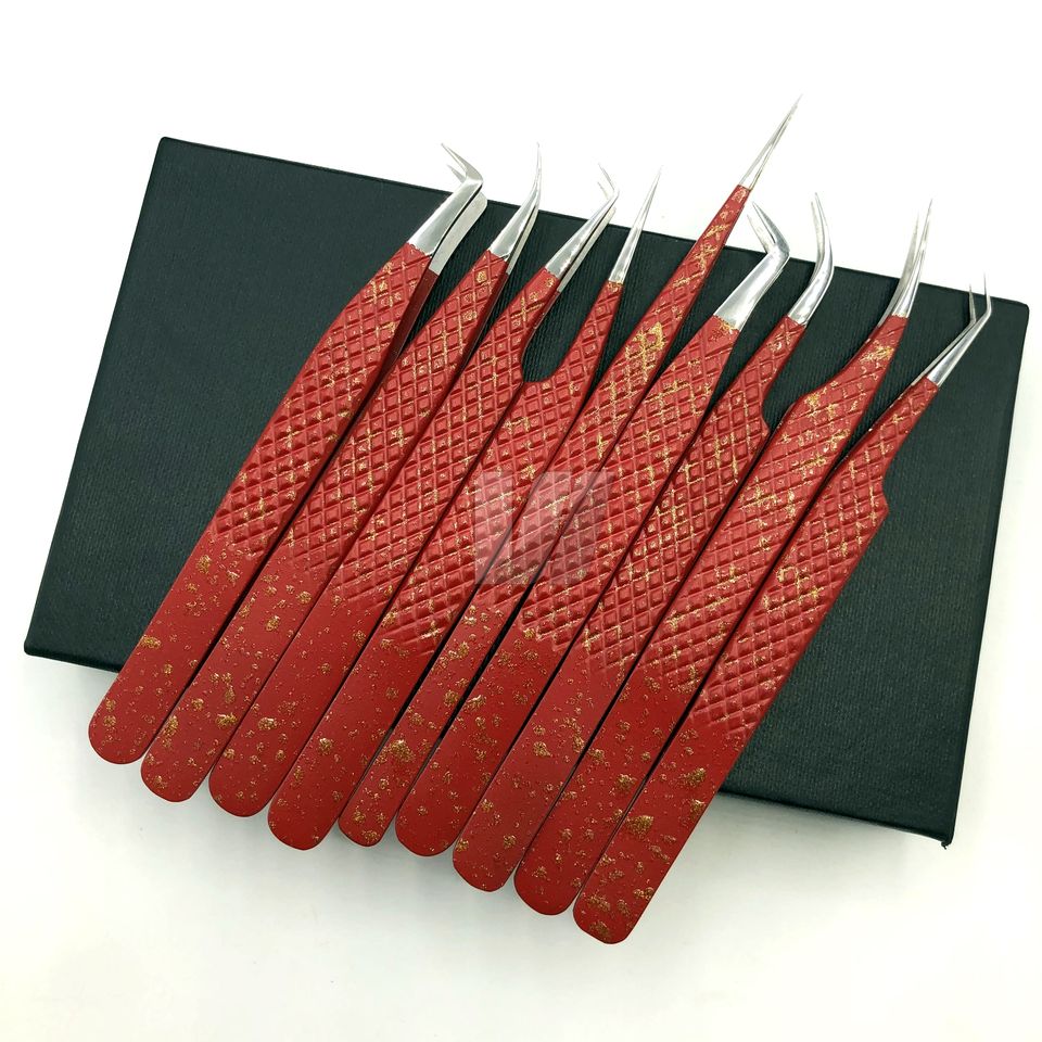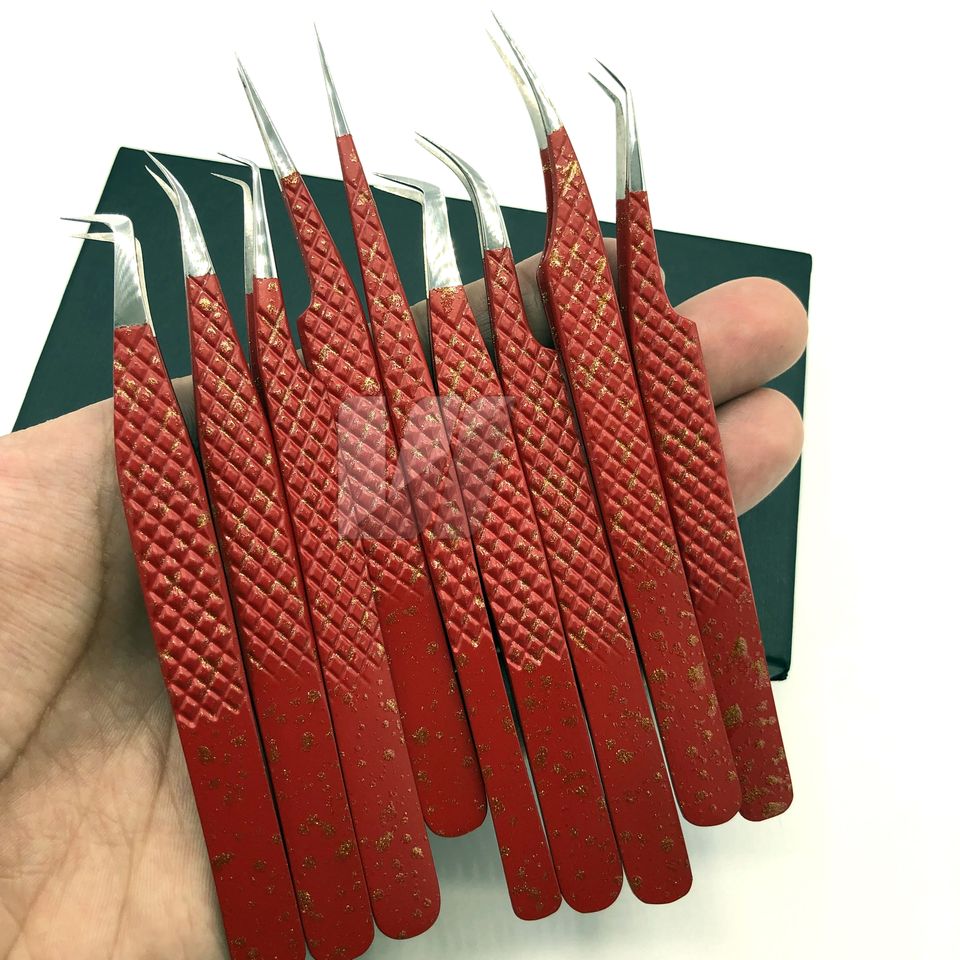 Pince à épiler d'extension de cils professionnelle en acier inoxydable japonais durable marron Volume fin pointu