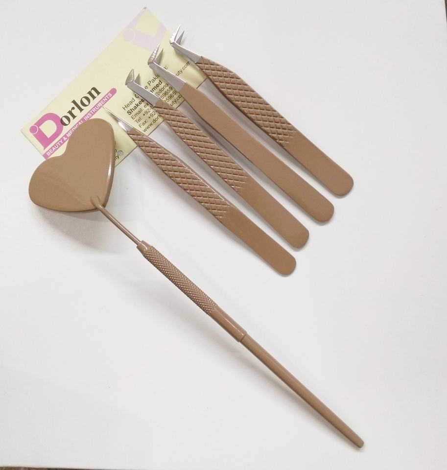Pince à épiler à cils enduits de couleur marron foncé Diamond Grip Pince à épiler pointue en acier inoxydable avec miroir de maquillage en forme de coeur
