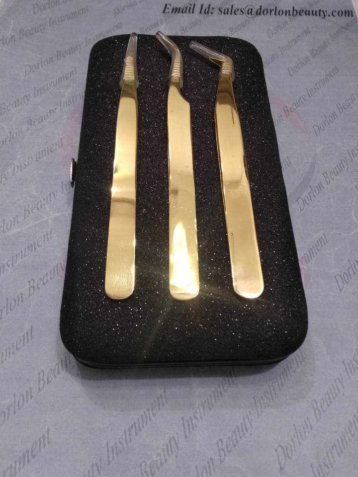 Diamond Grip Regular Silver Eyelash Tweezer Stainless Steel Curved Pointed Volume Eyelash Extension Tweezers With Lash Mirror