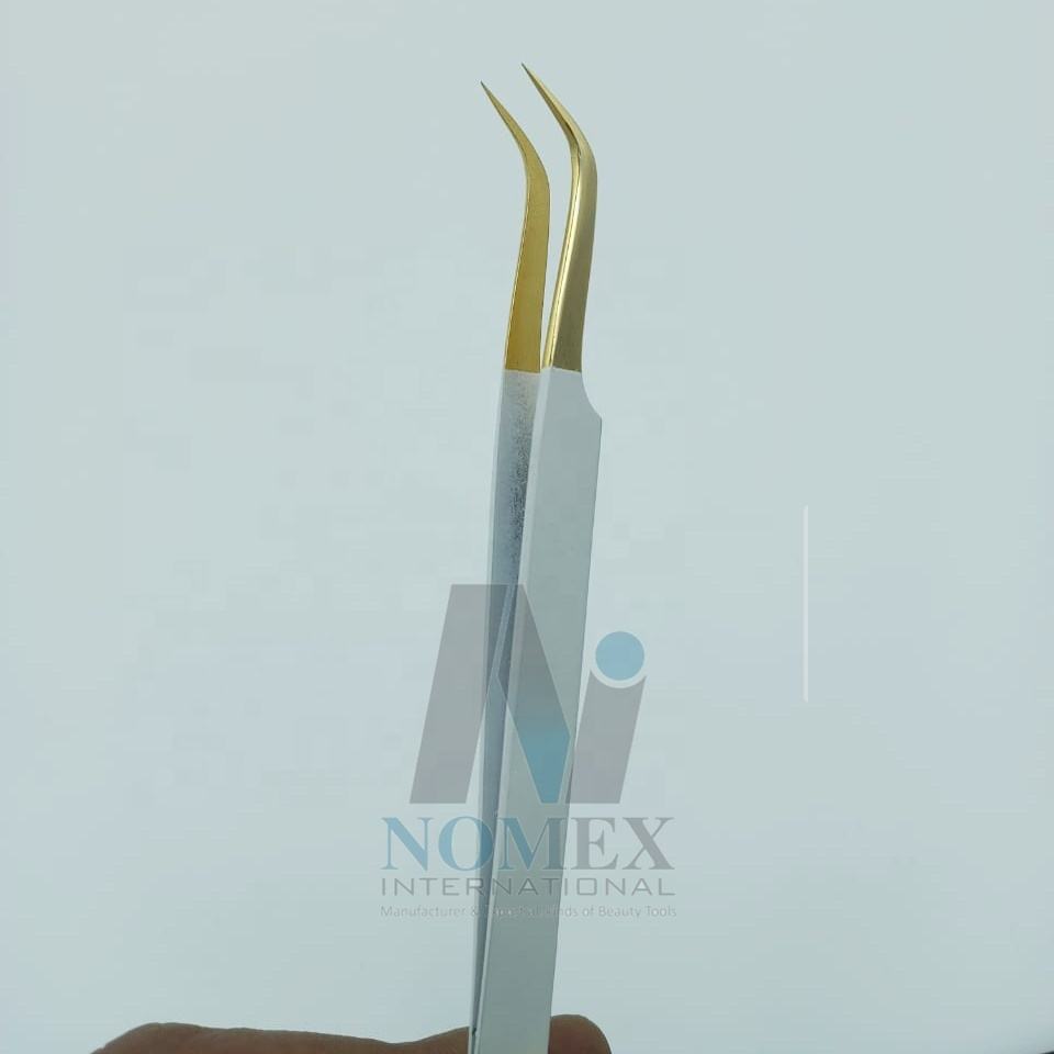 Pince à épiler d'extension de cils durable Diamond Grip blanc avec plaqué or pour outils de beauté de type pointe de volume et de fibre