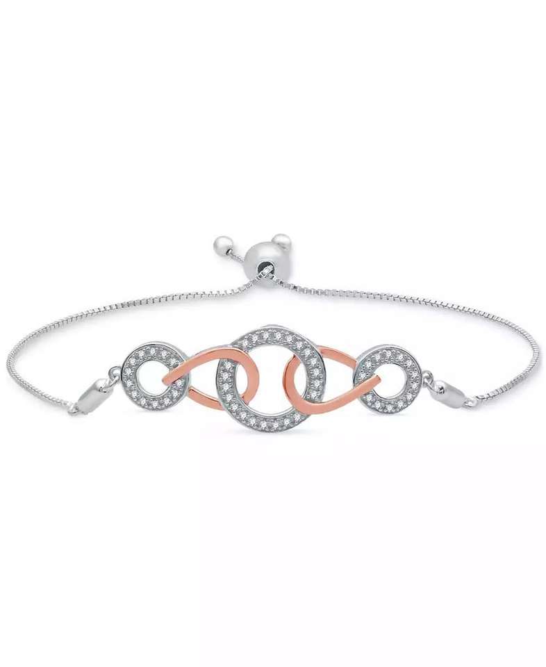 Bracelet Bolo à maillons imbriqués en diamant (1/6 ct. T. w.) en argent sterling et or rose 14k-Plaque | Macy's