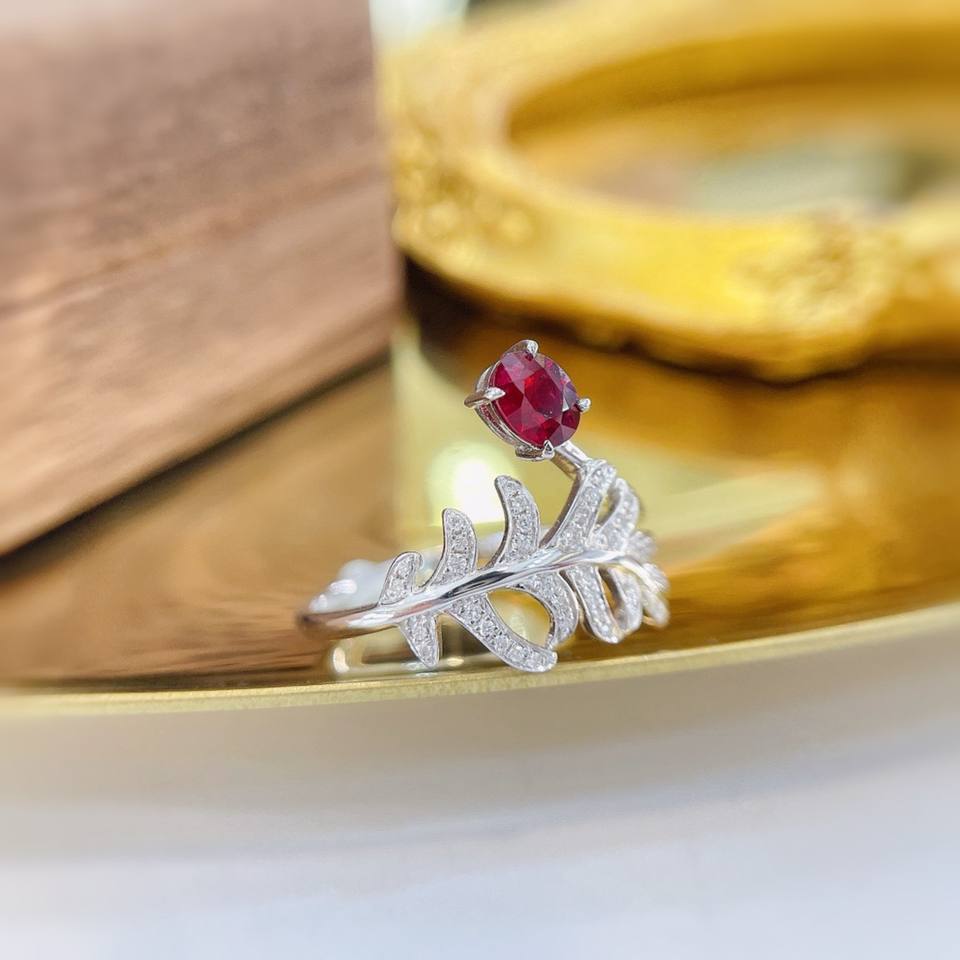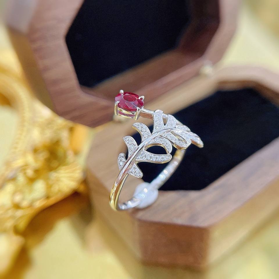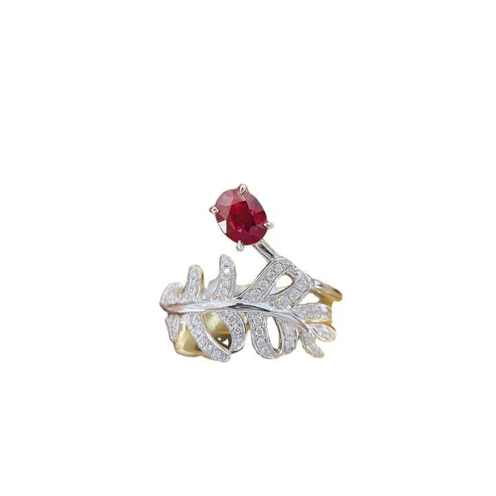 Bague feuille de bananier elliptique trésor rouge diamant