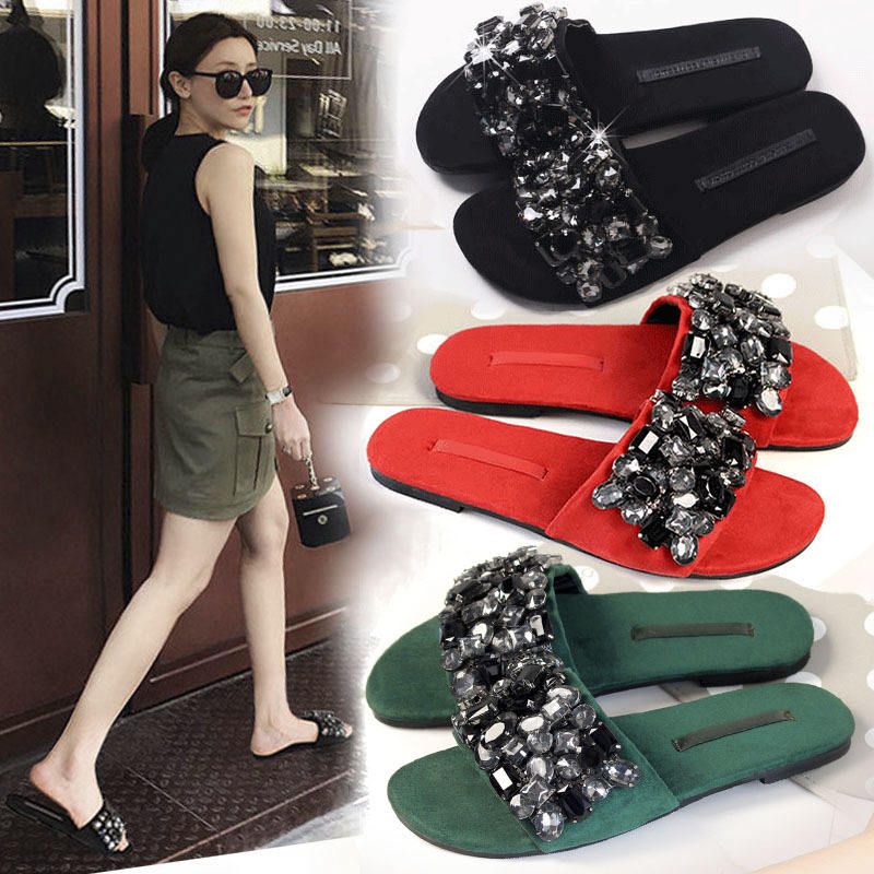 Sandales plates pour femmes, chaussures pour femmes, diamants en strass, grossiste d'usine