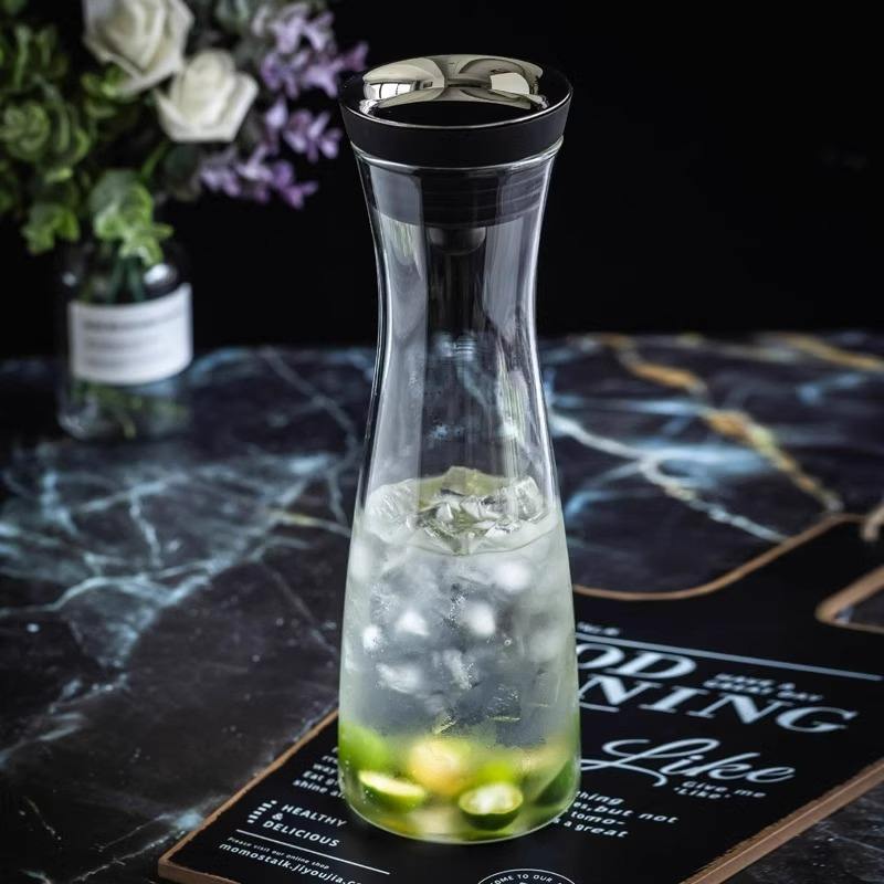 Carafe à eau froide en verre en forme de diamant avec couvercle pour usage domestique 1000 ml