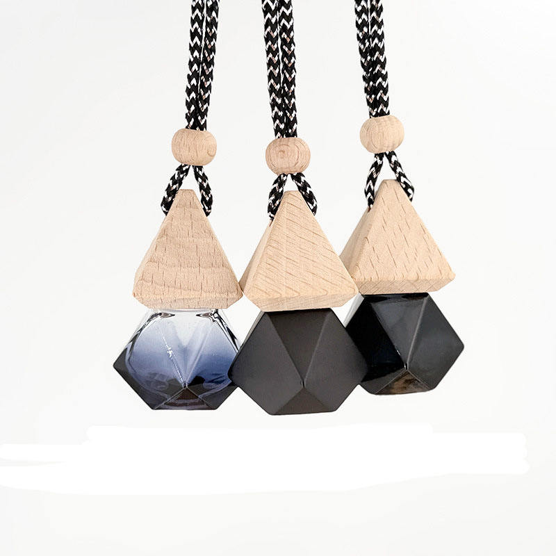 Diffuseur de parfum pour voiture en forme de diamant, 8 ml, flacon vide en verre suspendu avec couvercle à vis pour désodorisant et huiles essentielles