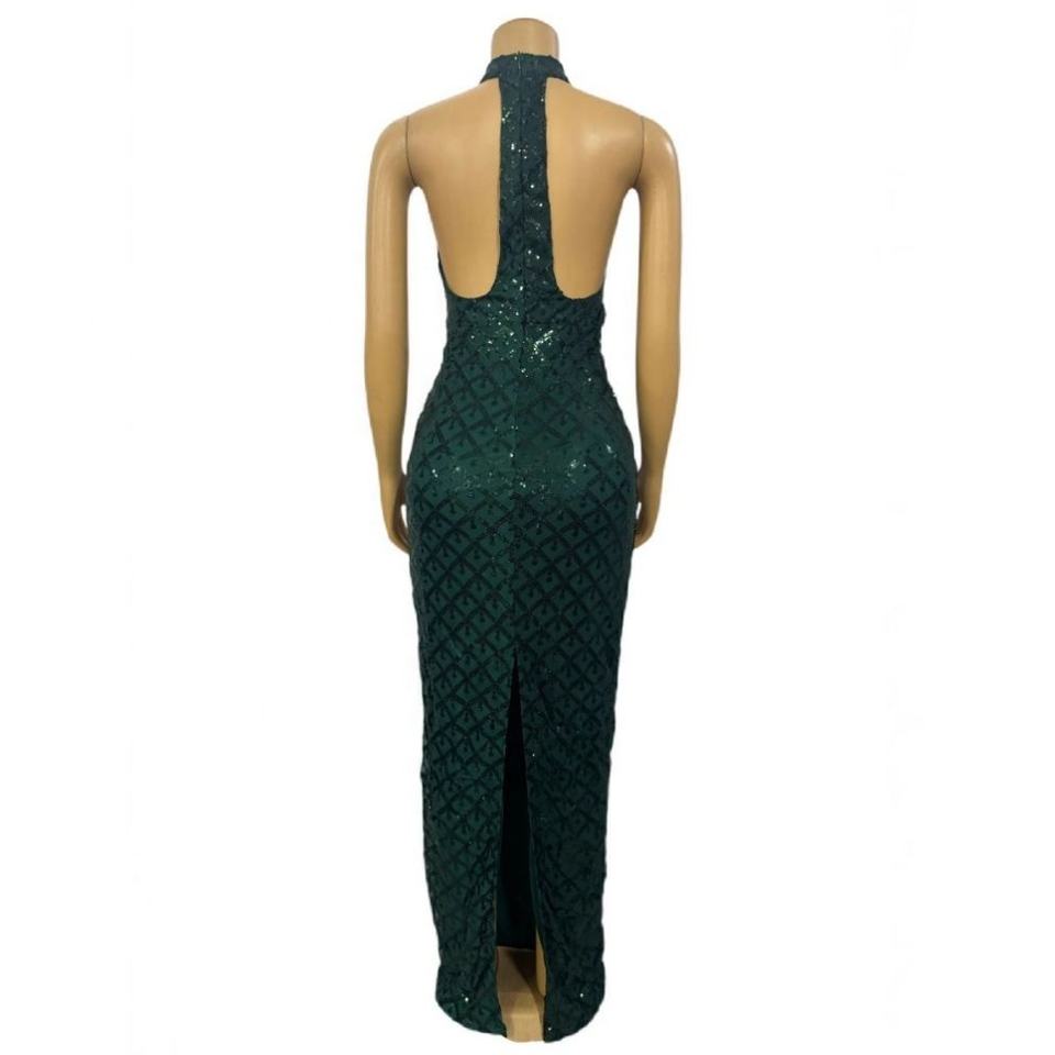 Robes de soirée pour femmes Diamond Slim sans manches, fendues et dos nu, Sehe Fashion