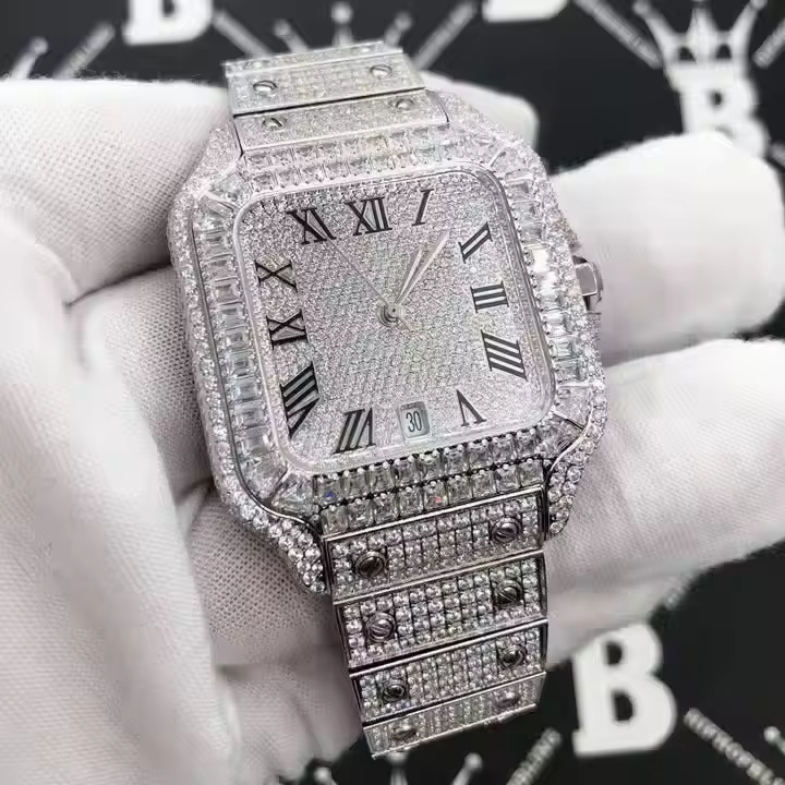 Montre en diamant avec mouvement mécanique ETA Boîtier en acier inoxydable Cadran en cristal de saphir-Style professionnel pour hommes d'Inde