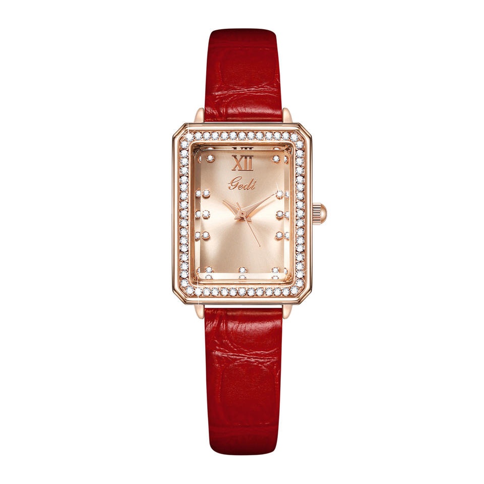 Diamond-set square women's watch exquisite case waterproof quartz watch with leather strap for middle school students