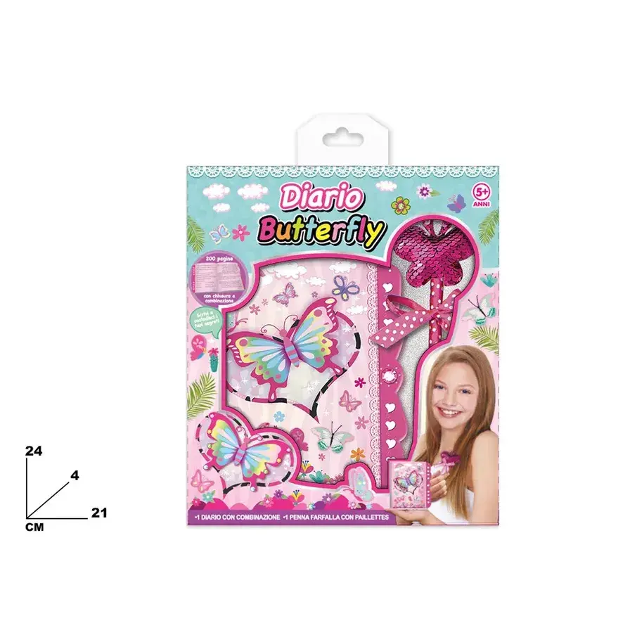 Diario Butterfly 200 pages avec serrure et combinaison pour enfants de 5 ans et plus