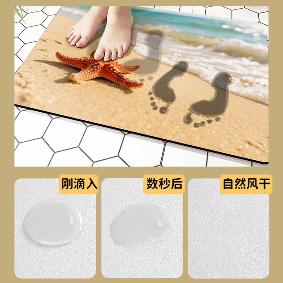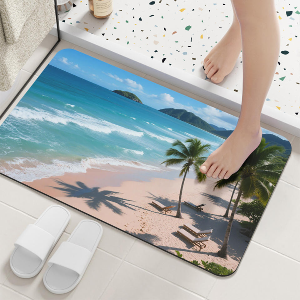 Tapis de bain en terre de diatomées rectangulaire, séchage rapide, antidérapant, pour salle de bain, douche, toilettes, design paysage océanique et plage