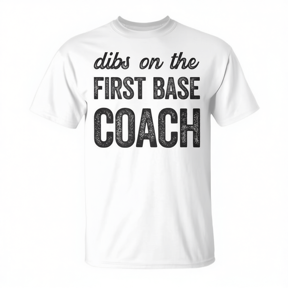 T-shirt Dibs On The First Base Coach en coton unisexe à col rond et manches courtes pour les fans de baseball