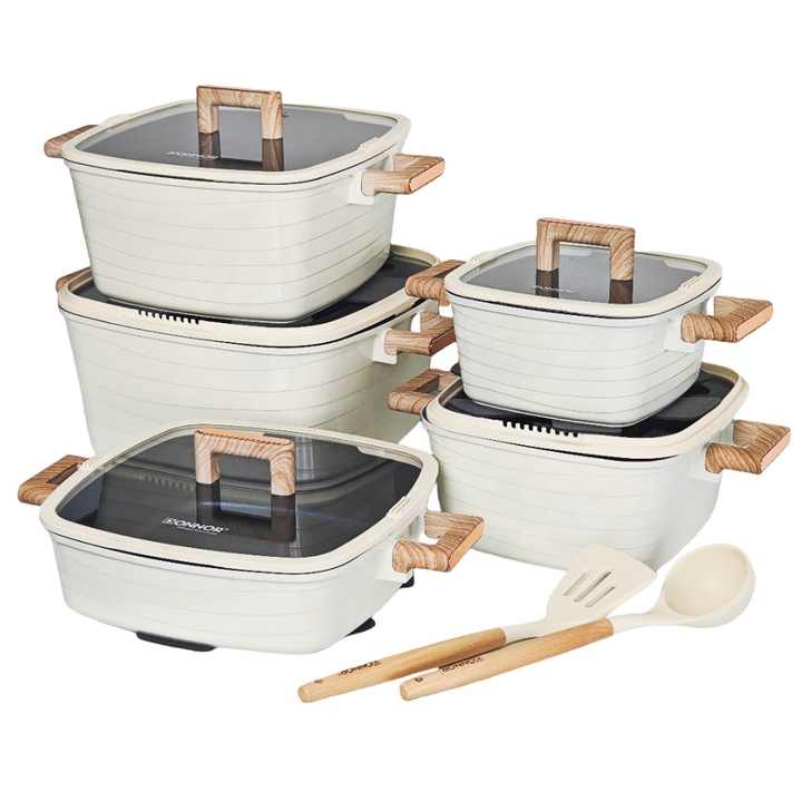 Batterie de Cuisine Antiadhésive en Fonte d'Aluminium, Grand Format, 16 Pièces, Ensemble de Casseroles et Poêles en Granit Antiadhésif