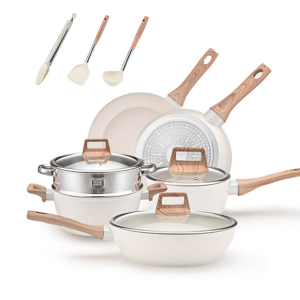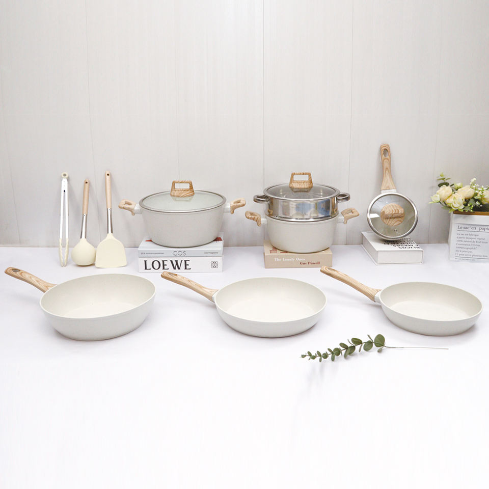Batterie de Cuisine Antiadhésive en Aluminium Moulé Sous Pression, Ensemble de Casseroles et Poêles Effet Granit avec Fond à Induction