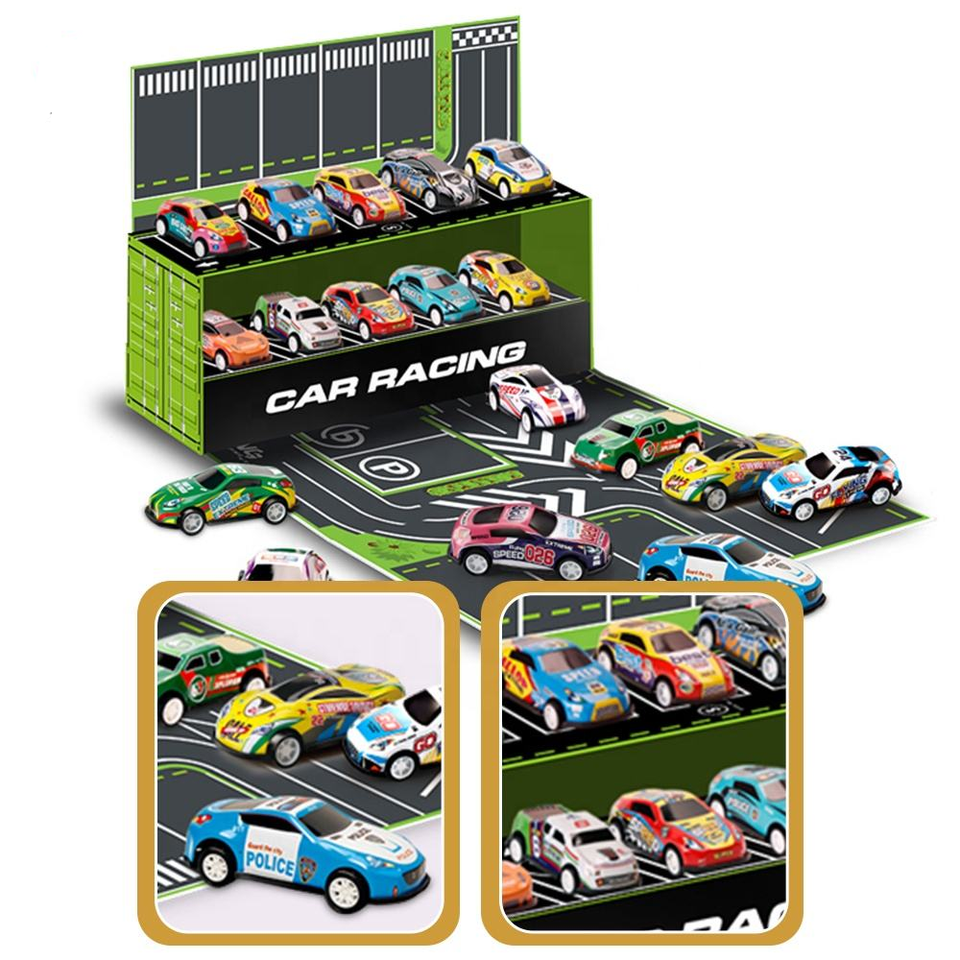 Ensemble de voitures de course miniatures en métal moulé sous pression, avec boîte de rangement, portable, cadeau idéal pour les enfants