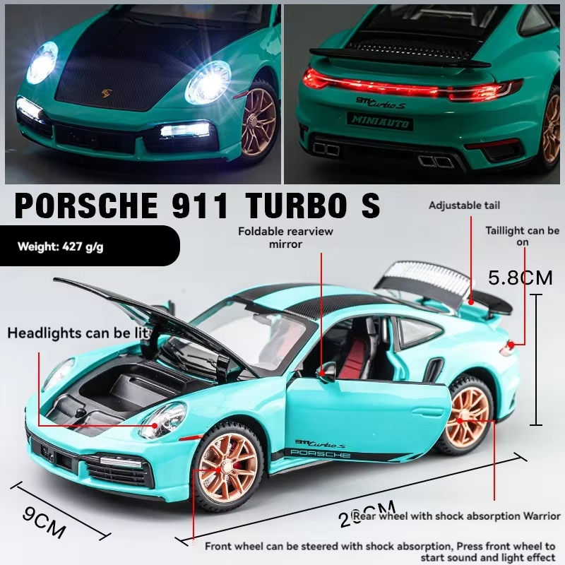 Modèle en alliage 1:32 moulé sous pression Porche 911 TurboS avec portes de retrait son et lumière ouvertes en métal modèle de voiture affichage Collection jouet cadeau