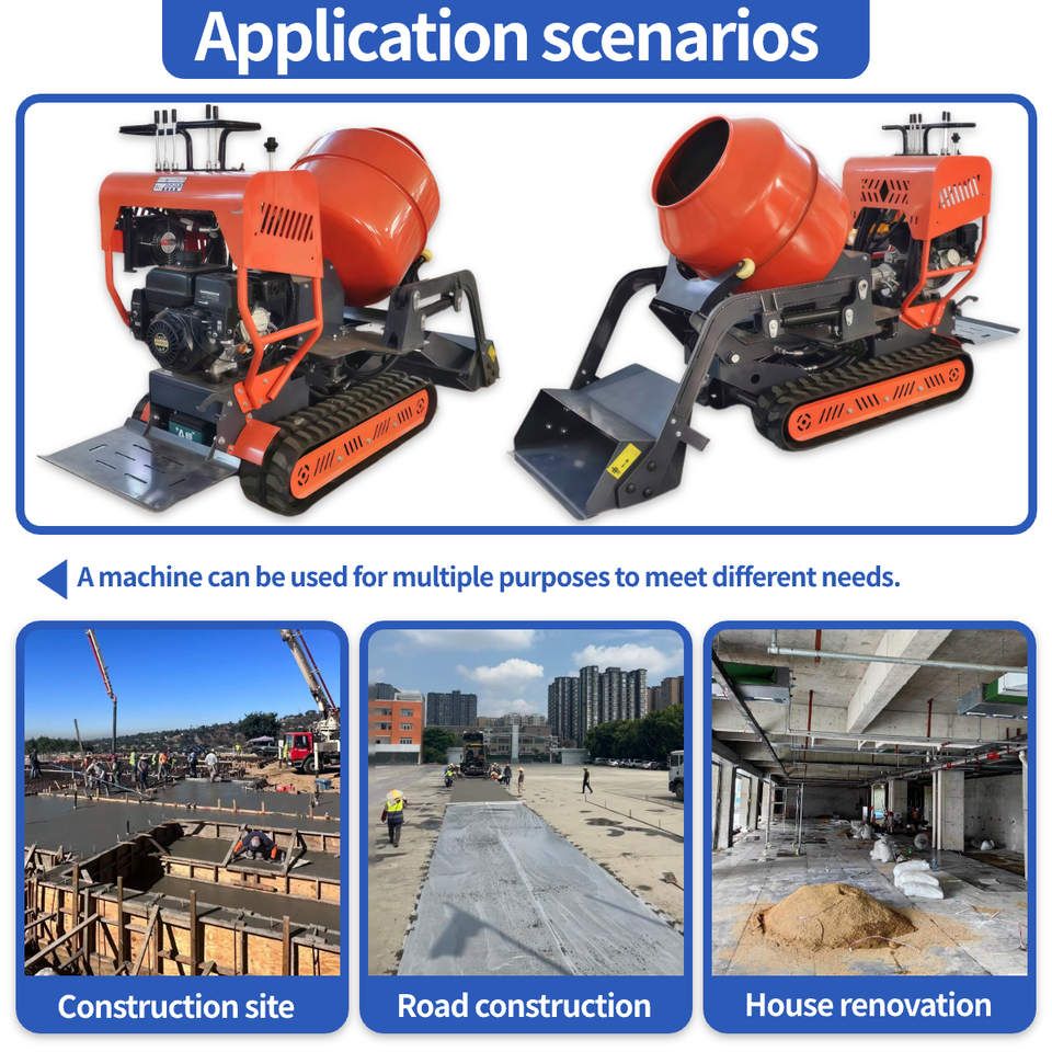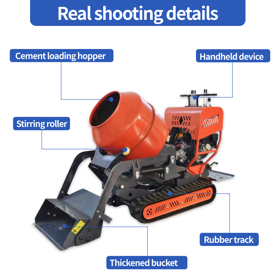 Mini bétonnière sur chenilles diesel avec engrenage sur chenilles 500L Petite bétonnière à chargement automatique pour camion à benne basculante