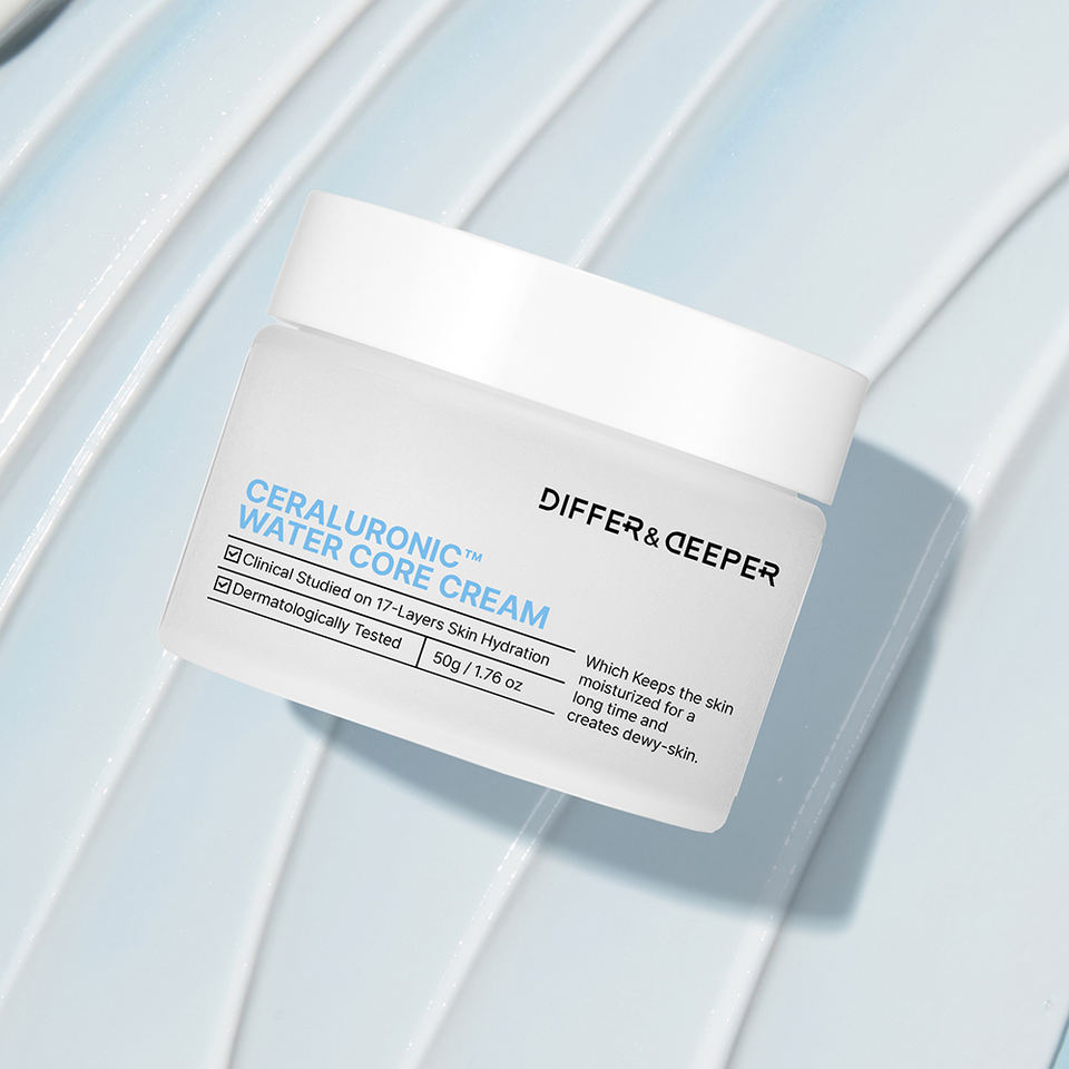 Crème hydratante anti-âge Differ&Deeper Ceramide Water Core à l'acide hyaluronique pour tous types de peaux