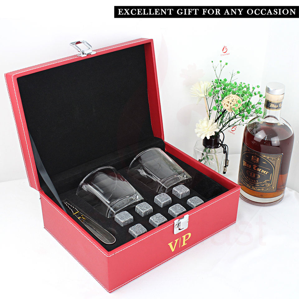 Nom de l'article:Ensemble de boîte en cuir de pierre de glace de whisky