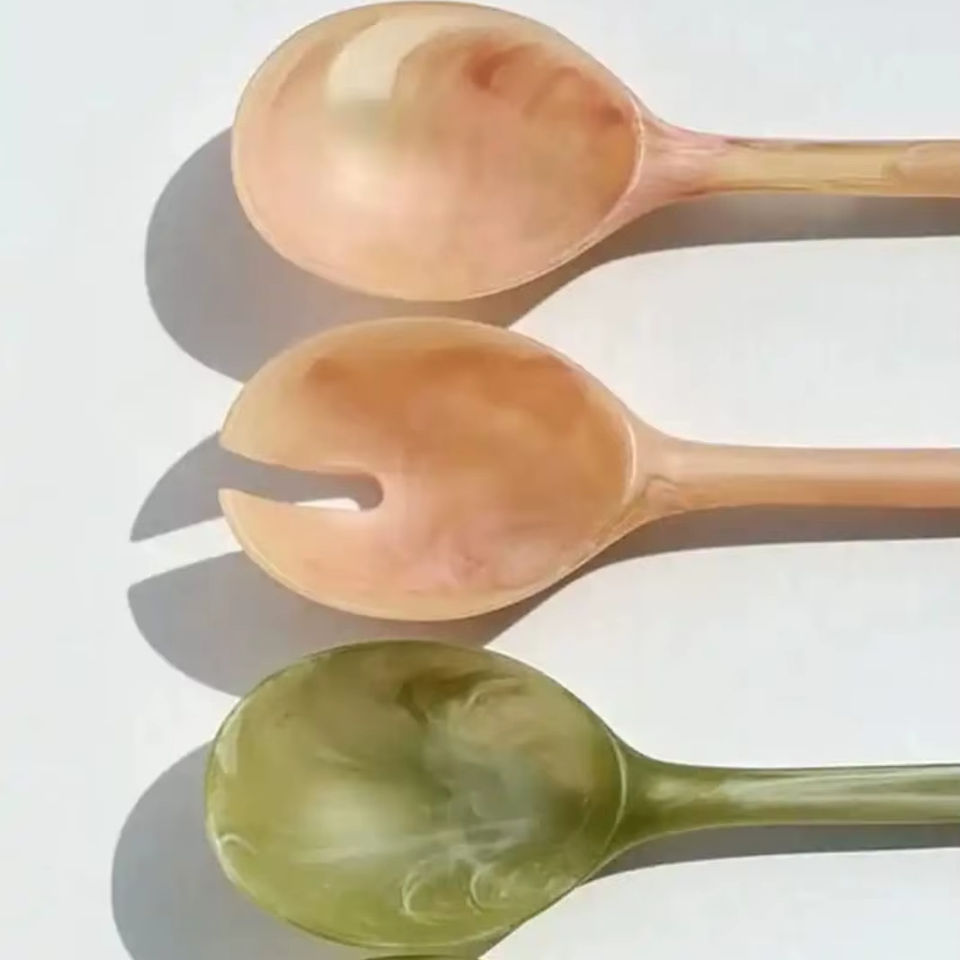 Ensemble de saladiers en résine aux designs et couleurs variés, cuillère de service écologique avec poignée graduée, passe au lave-vaisselle, ustensile de cuisine