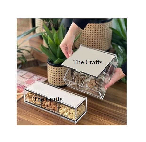 Différentes formes ensemble de deux boîtes acryliques de serveur de noix avec couvercle en métal serveur de chocolat de la plus haute qualité en vrac